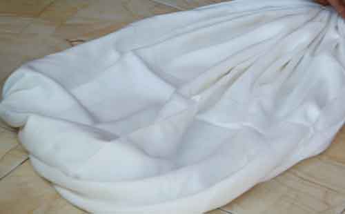 ความขาว ตรวจดูความขาวของผ้าว่าขาวสะอาดสดใสหรือไม่ ถ้าไม่ขาวสะอาดควรทำการฟอกด้วยสารฟอกขาวก่อน เช่น ด่างล้างสีตราช้าง